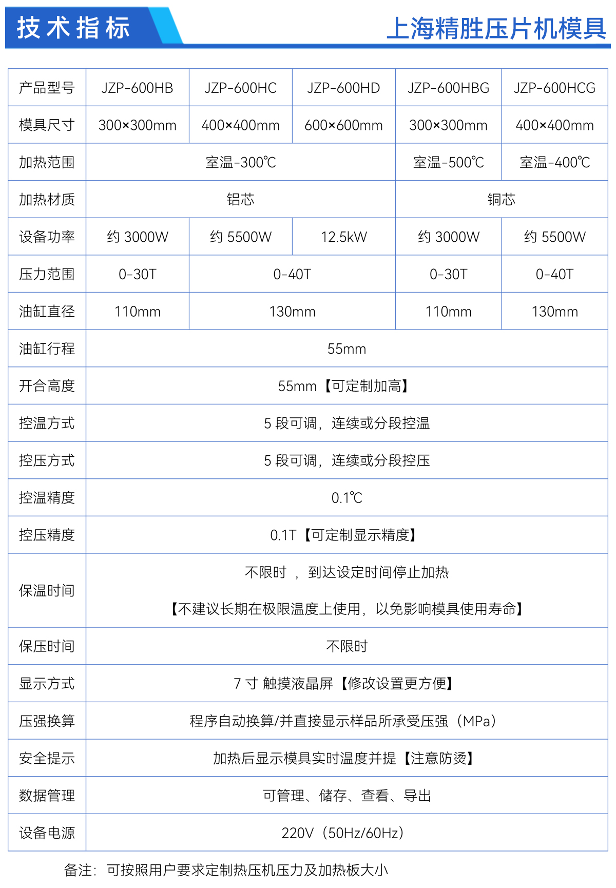 备注:可按照用户要求定制热压机压力及加热板大小